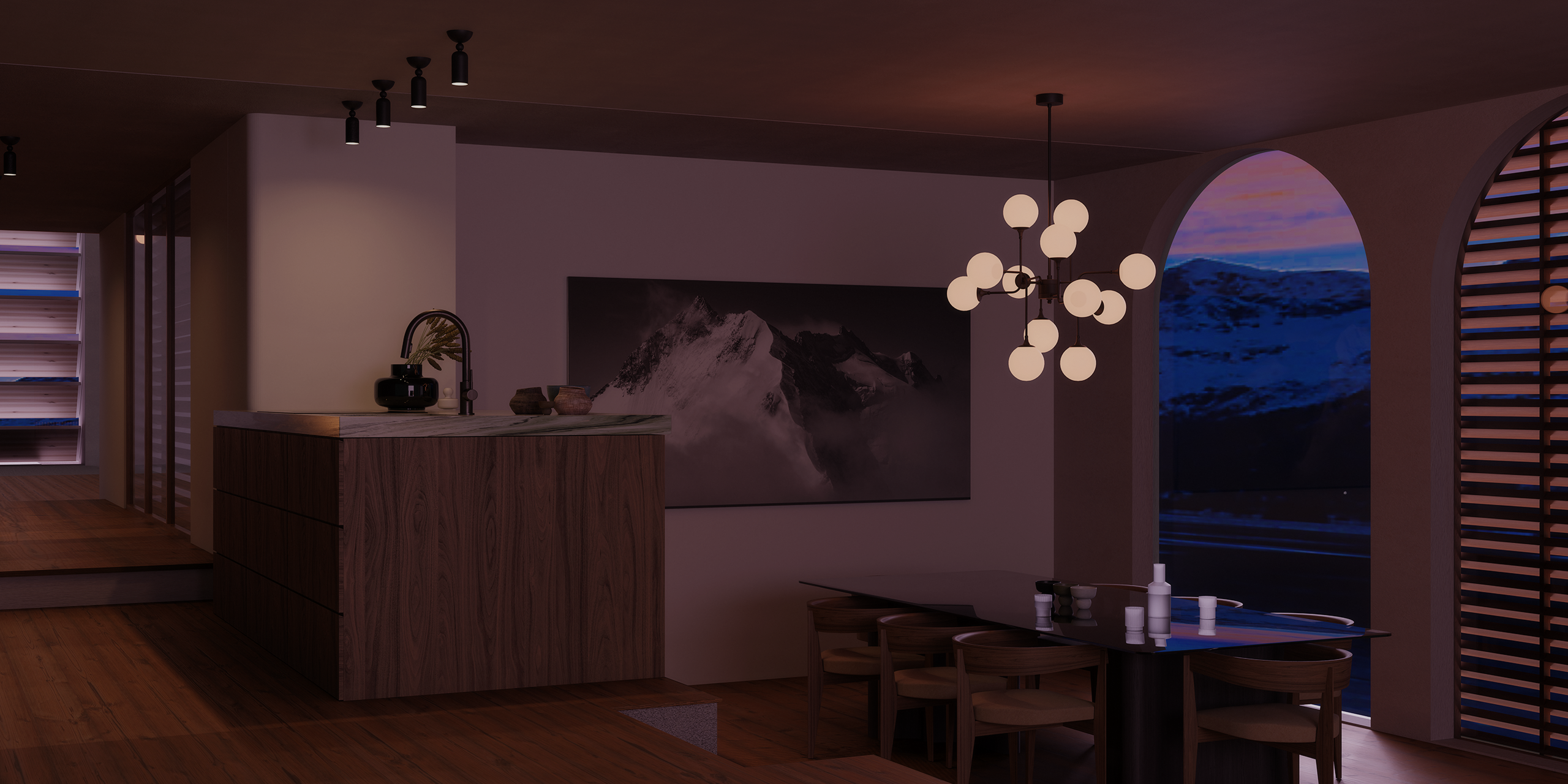 After the day’s ascent, it offers refuge without demand — a space to recharge and prepare for what comes next. Every element is calibrated for quiet return, where heritage and seasonal clarity meet contemporary restraint. The design unfolds deliberately, letting the inhabitant’s routine dictate experience, as snow, light, and warmth shift around them in gentle choreography.